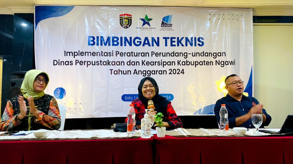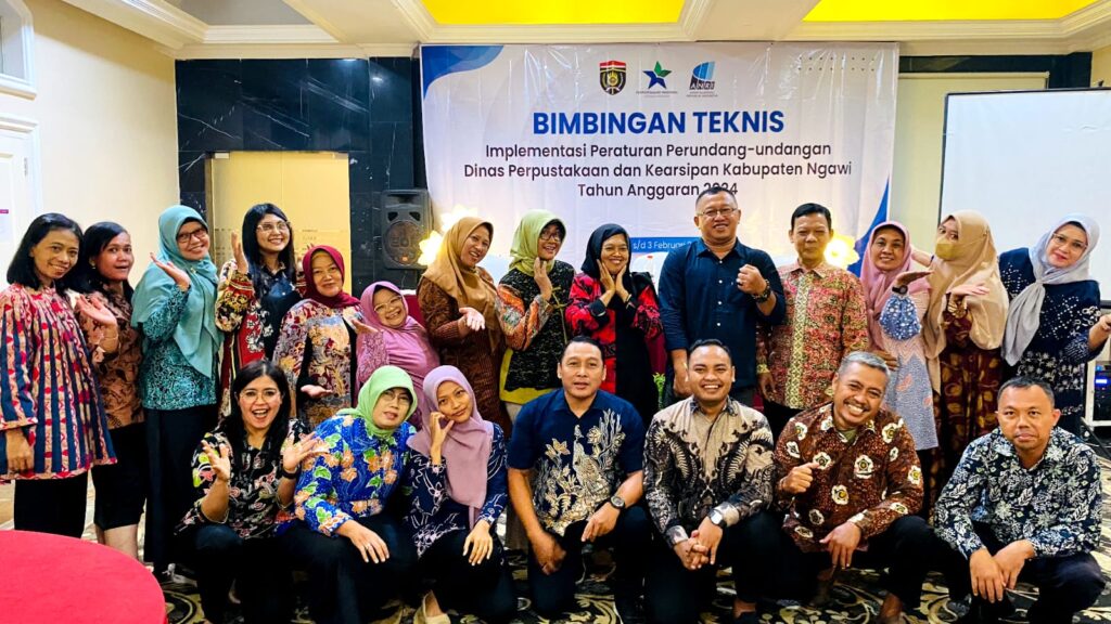 Dinas Perpustakaan dan Kearsipan Kabupaten Ngawi mengadakan acara Bimbingan Teknis Peraturan Perundang-undangan tentang Pengadaan Barang/Jasa Pemerintah dari tanggal 1 februari sampai dengan 3 februari 2024 bertempat di Adhiwangsa Hotel and Convention Hall, Jalan Adi Sucipto Nomor 146, Laweyan Kota Surakarta Provinsi Jawa Tengah.