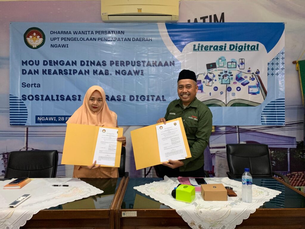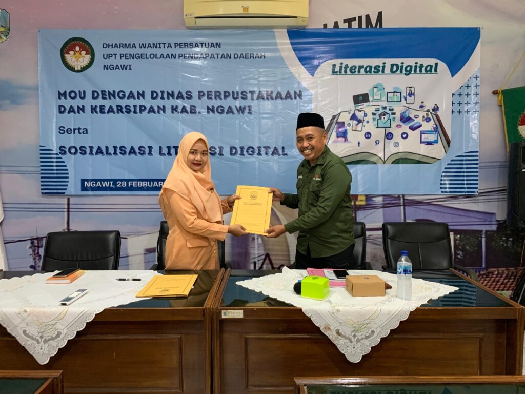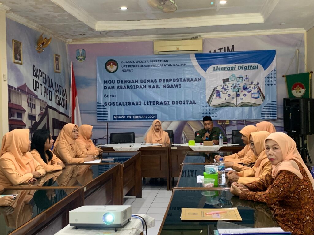 Rabu 28 Februari 2024 bertempat di Aula Badan Pengelolaan Keuangan Provinsi  Jawa Timur (UPT Pengelolaan Pendapatan Daerah Ngawi) diadakan Sosialisasi Literasi Digital yang bersamaan dengan acara rapat pleno UPT Darma Wanita Persatuan Bapenda Prov Ngawi dibuka langsung Ibu Ketua NY Titin Heru Kurnianto