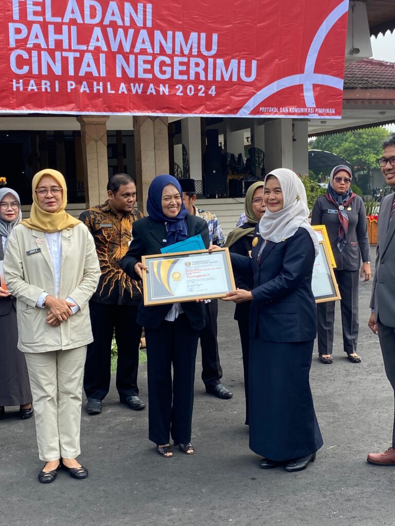 Apresiasi dan penghargaan disampaikan langsung oleh Pjs.Bupati Ngawi, Tiat S. Suwardi dalam momen acara Peringatan hari Pahlawan, yang diadakan pada hari Senin, tanggal 11 November 2024,bertempat di Halaman Pendopo Wedya Graha, dan diterima langsung oleh Kepala Dinas Perpustakan dan Kearsipan , Kartikawari Pinilih.
